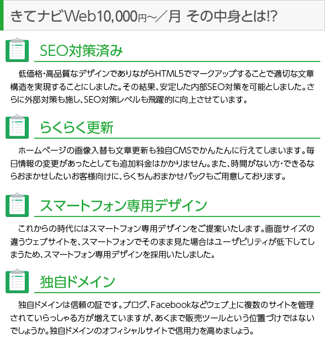 この機会に”きてナビWEB”でオフィシャルサイトを持ってみませんか?